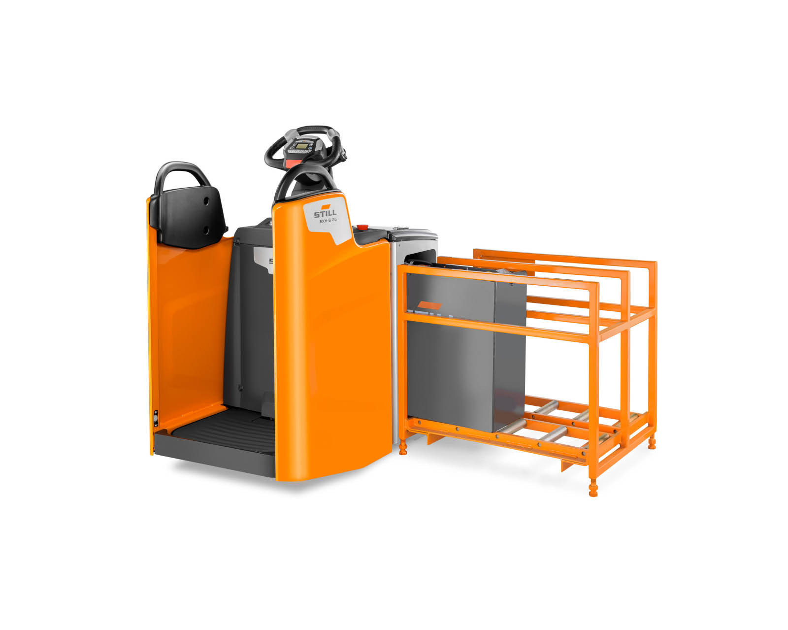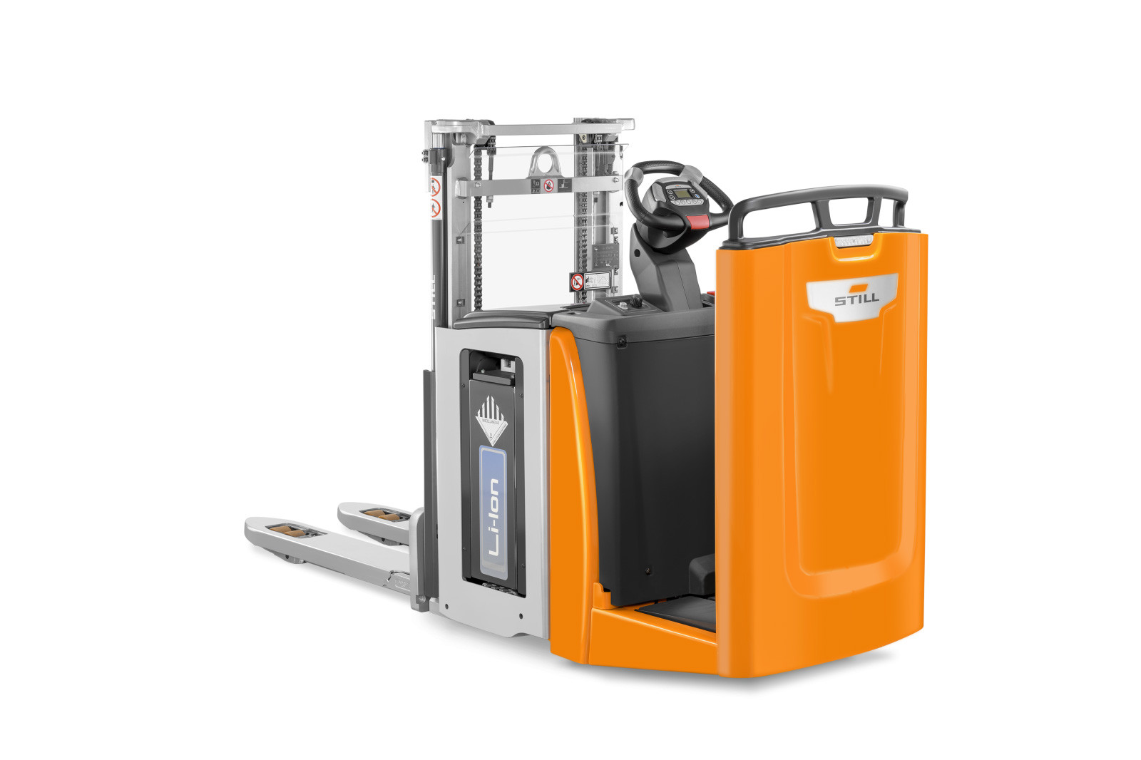 Ergonomia intelligente: i modelli STILL offrono il massimo comfort, grazie ai comandi ergonomici del timone, agli ampi sedili e alle pedane con sospensioni pneumatiche per gli operatori. L’intelligente ausilio di posizionamento permette di sovrapporre due pallet con semplicità e precisione. La sicurezza durante la marcia è sempre garantita dal sistema automatico per il controllo della velocità in curva (Curve Speed Control).