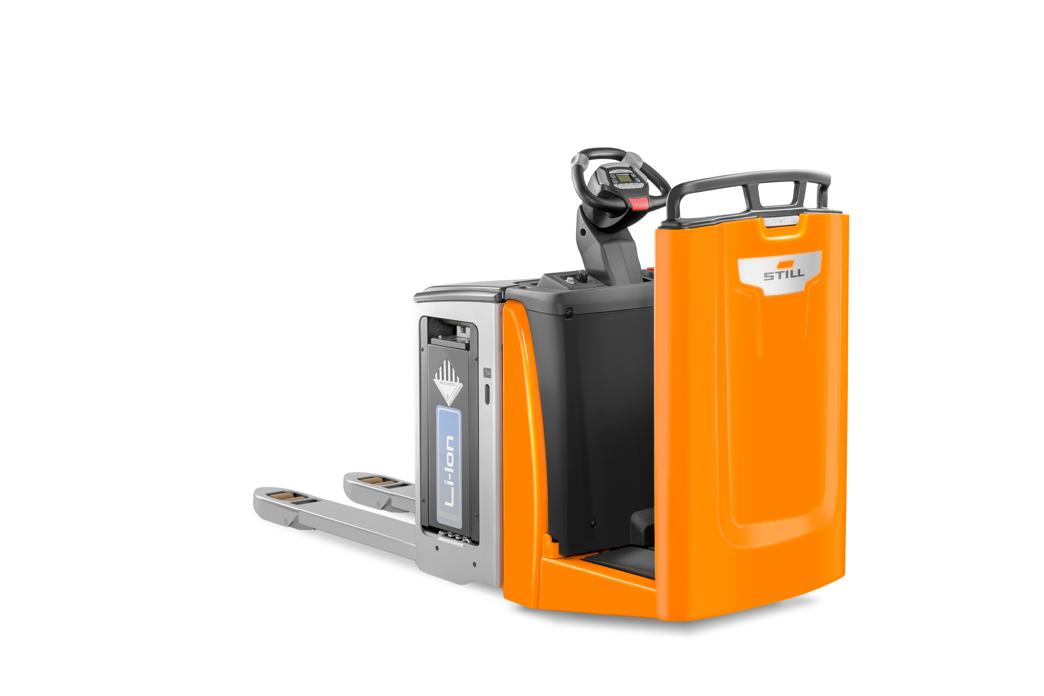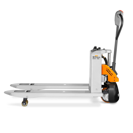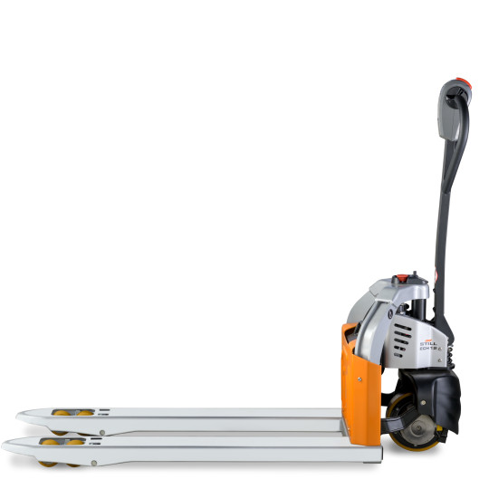 Il fattore importante dal punto di vista dell'implementazione è che i modelli di transpallet elettrici che non sollevano il carico oltre i 30 cm non richiedono autorizzazioni aggiuntive. Alla luce del regolamento sulla sicurezza e la salute sul lavoro nell’uso dei carrelli elevatori a motore, in vigore dal 10.08.2018, è sufficiente che la persona che li manovra abbia una patente standard di categoria B e si sottoponga a una formazione introduttiva offerta dal datore di lavoro. Oltre ai più comuni sollevatori a timone che si vedono nei negozi, STILL offre anche transpallet con piattaforma pieghevole o sedile di guida fisso, apprezzati per il trasporto orizzontale su distanze più lunghe.